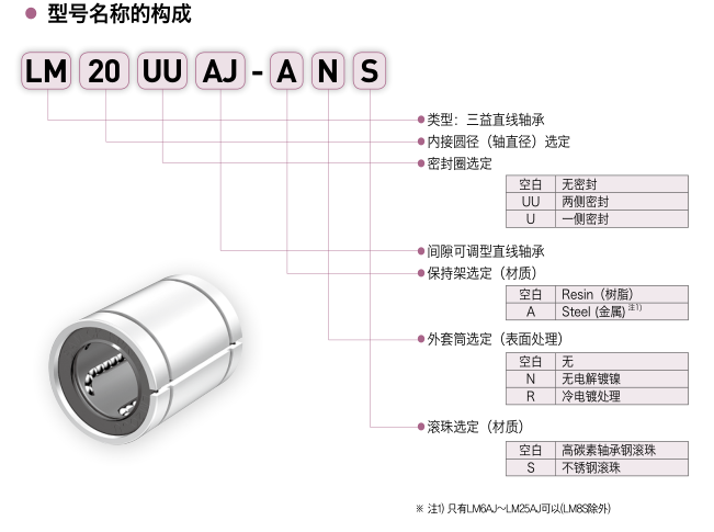 直线轴承间隙可调型-LM-AJ规格尺寸表